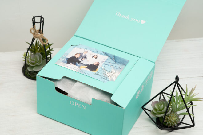 一つひとつカットして、素敵なブルーBOXでお届けしています。